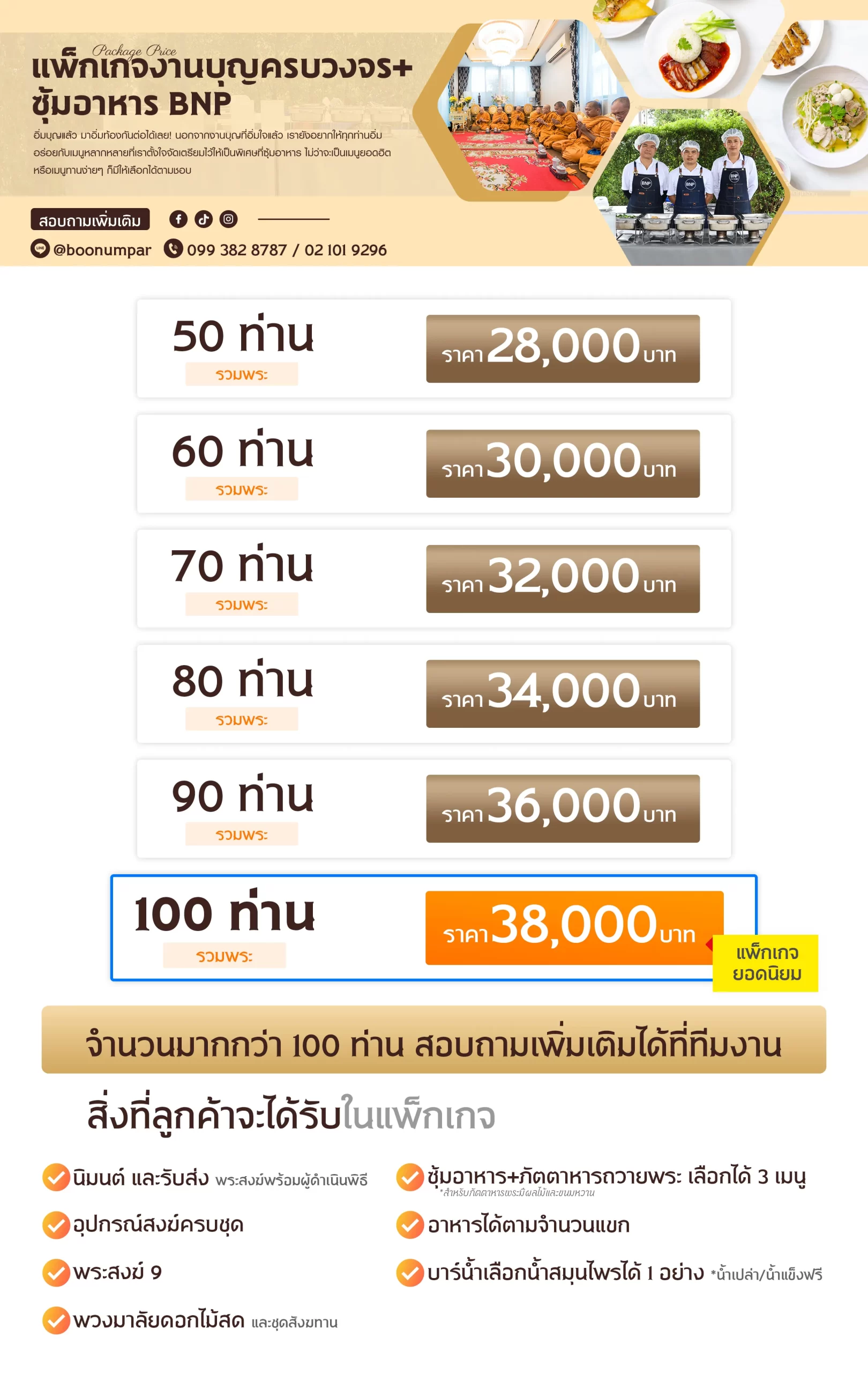 อาหารซุ้มทำบุญบ้าน เลือกเมนูได้เอง เราดูแลครบ ทั้งพิธิสงฆ์ อาหาร อุปกรณ์ ครอบคลุมทั่วกรุงเทพฯและปริมณฑล